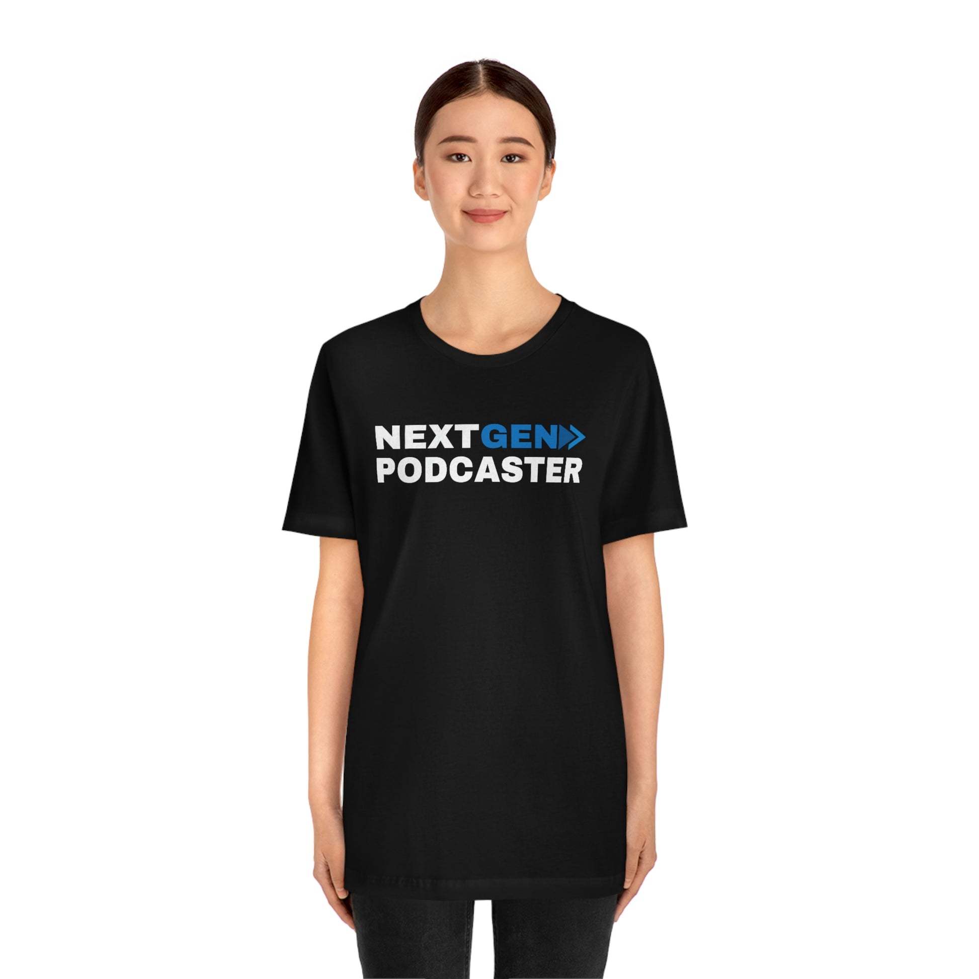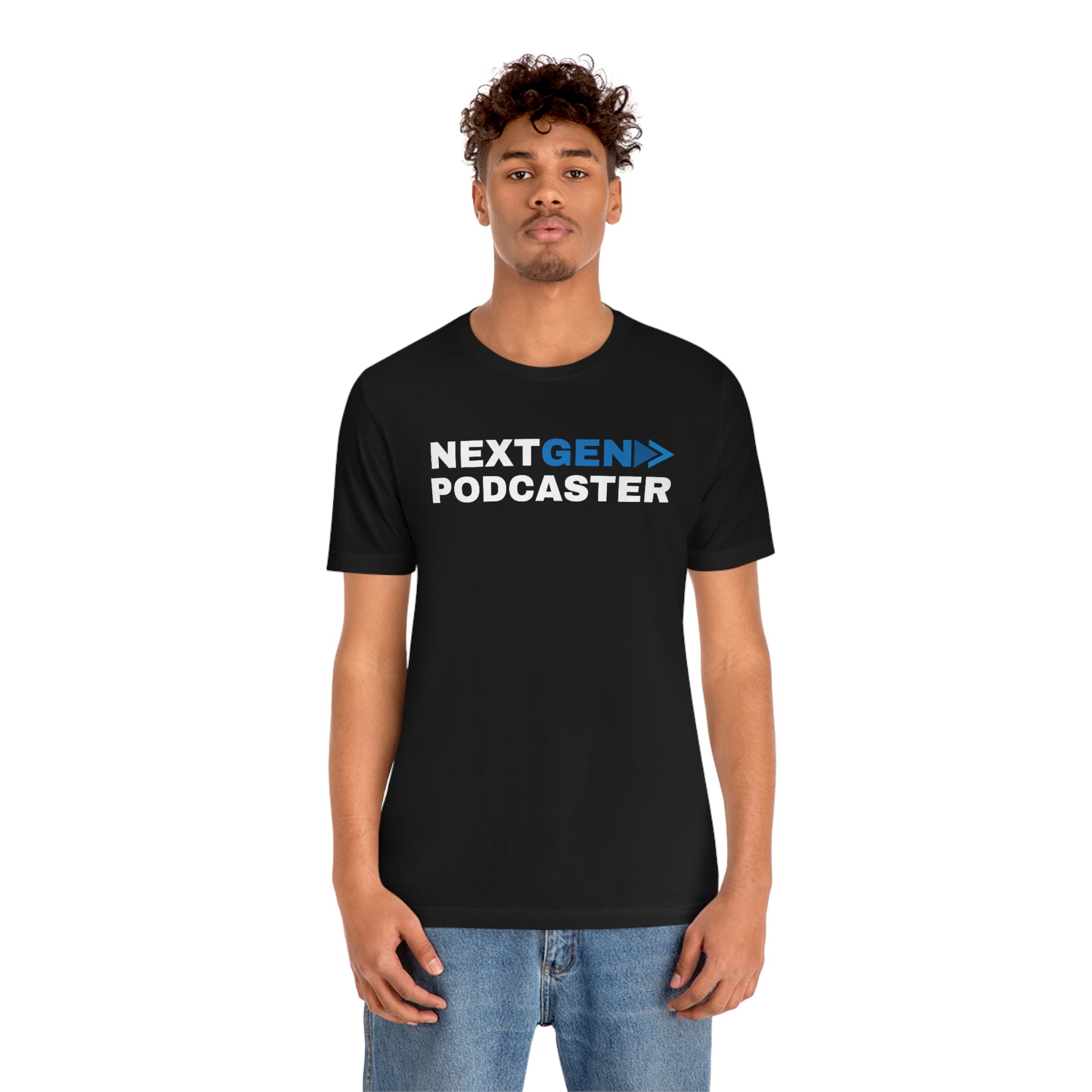 For the cutting edge podcaster that embraces new technology and AI, this classic unisex jersey short sleeve tee fits like a well-loved favorite. Soft cotton and quality print make users fall in love with it over and over again. These t-shirts have-ribbed knit collars to bolster shaping. The shoulders have taping for better fit over time. Dual side seams hold the garment's shape for longer.